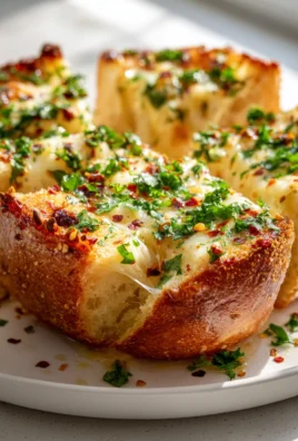 - Servieren: Lassen Sie das Brot ein bis zwei Minuten ruhen, bevor Sie es in servierfertige Stücke schneiden. Garnieren Sie es optional mit frischer, gehackter Petersilie oder Chiliflocken.