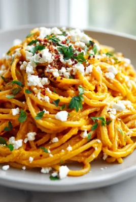 Würzige Pasta mit Kürbissoße, Feta und Chili-Flocken