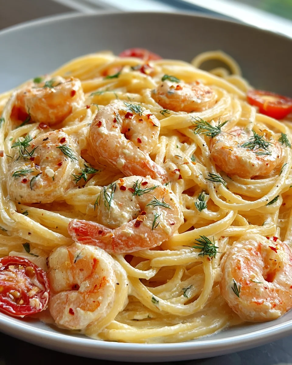Traumhafte Spaghetti mit Garnelen in cremiger Frischkäsesauce