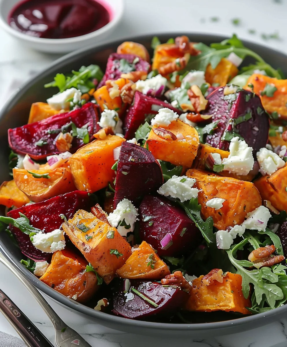 Gerösteter Rote Bete Süßkartoffel Salat: Farbenfroh & Lecker!