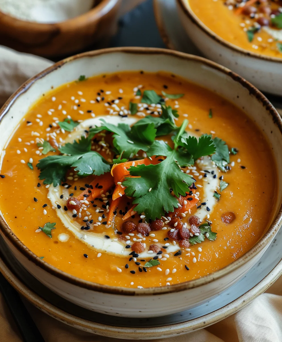 Scharfe Sesam Karotten Suppe mit roten Linsen – Lecker!