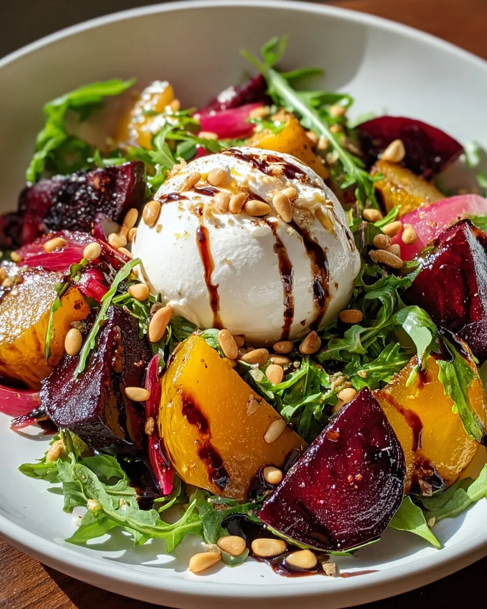 Rote Bete Burrata Salat mit Pinienkernen: Luxus für dich!