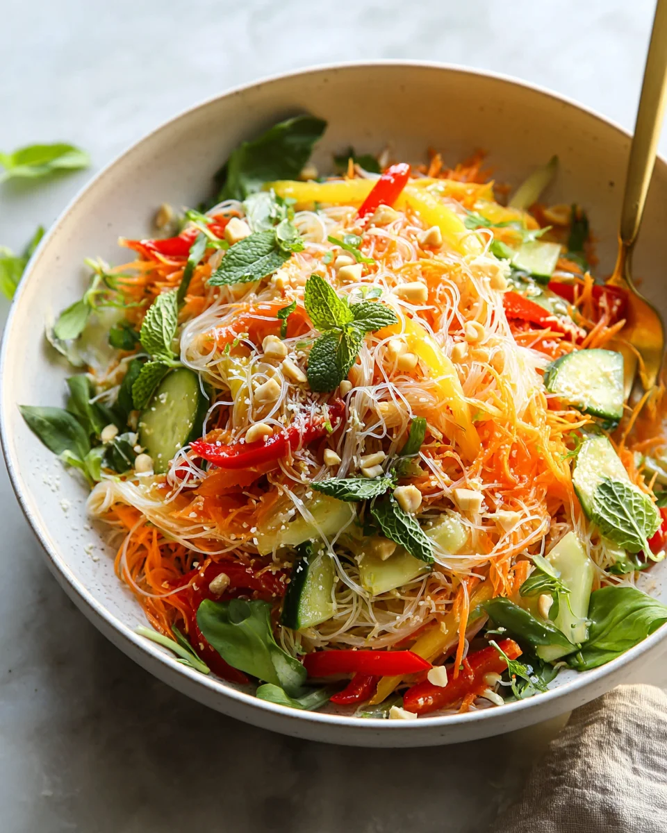 Frühlingsrollen Salat: Würziges botanisches Dressing, super lecker!