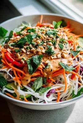Leichter Frühlingsrollen Salat mit cremigem Erdnussdressing