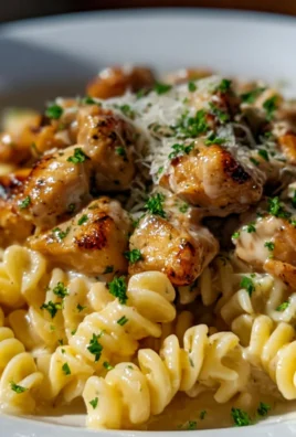 Twisted Pasta mit Honig-Knoblauch-Hühnchen und Parmesan-Creme